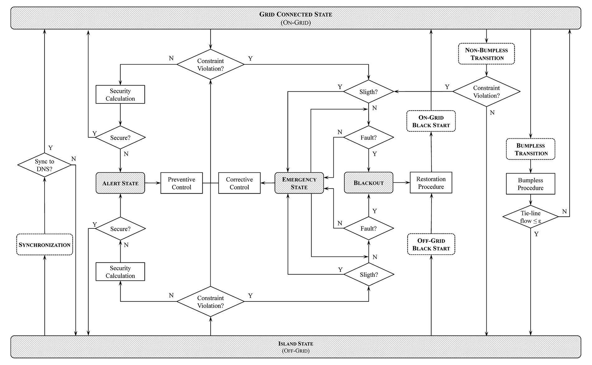 Transition from on-grid to off-grid mode and viceversa, by managing the microgrid in order to ensure a seamless transition.